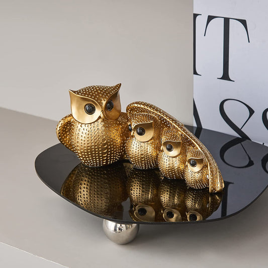 Owl Statue Home Decor, Owl Figurines for Living Room Decor,owls Decor for Unique Home Office, Gold Decor Animal Small Sculpture for Shelf, Modern Bookself TV Stand, Owls Gifts for Women and Owl Lovers