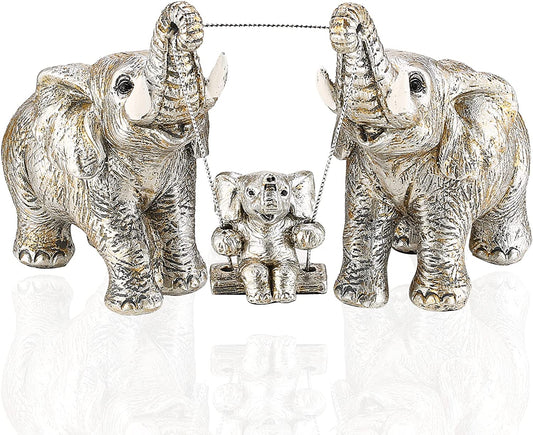 Elephant Statue Mom Gifts. Home Decor Accents Elephant Figurines for Bookshelf Living Room Office Table Shelf Decorations. Good Luck Elephant Gifts for Women (Silver)