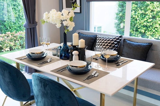 Placemats Set of 6 for Dining Table Washable Woven Vinyl Non-Slip Placemat Heat-Resistant Durable Table Mats for Dining Table Easy to Clean(Black Corner)