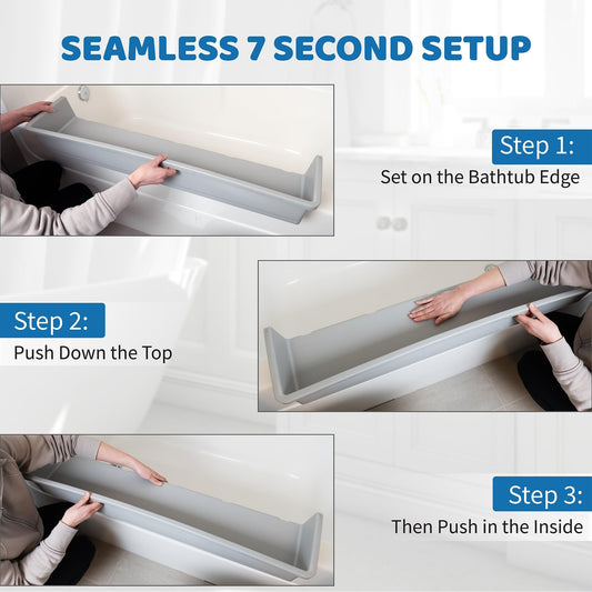 Bathtub Splash Guard Play Shelf Area - Toy Tray Caddy Holder Storage - Suction Cups Attach to Bath Tub - No Mess Water Spill in Bathroom - Fun for Toddlers Kids Baby (White)