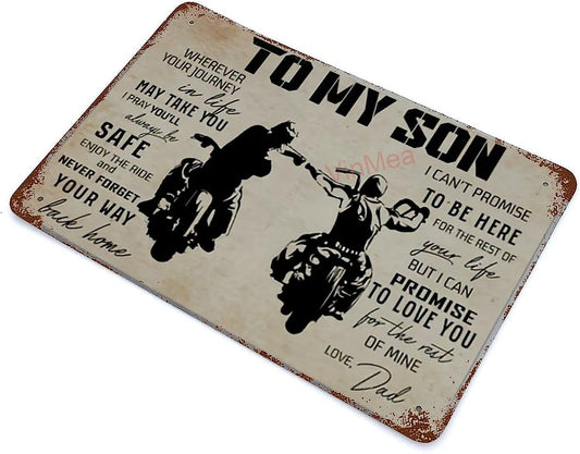Dad and Son Biker to My Son Vintage Metal Sign Wall Decor for Bars Restaurants Cafes Pubs 12x8