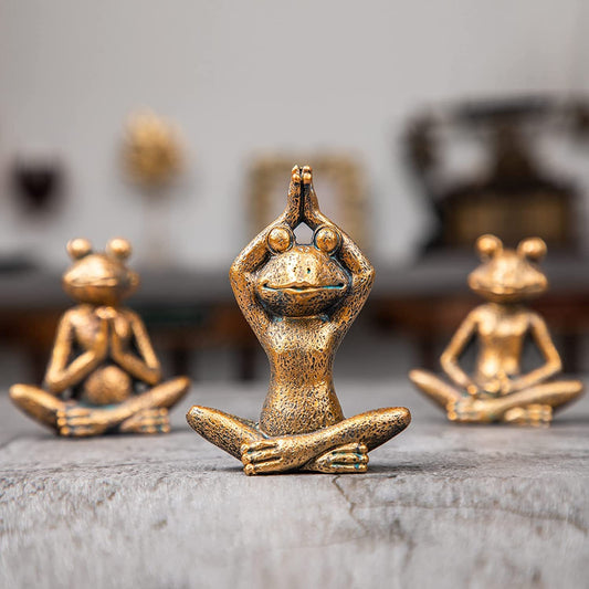 Frog figurines yoga zen decor – frog yoga statues for home decor,set of 3 yoga statues and sculptures meditation decor for shelves,zen decor yoga statue shelf decor accent antique bronze color