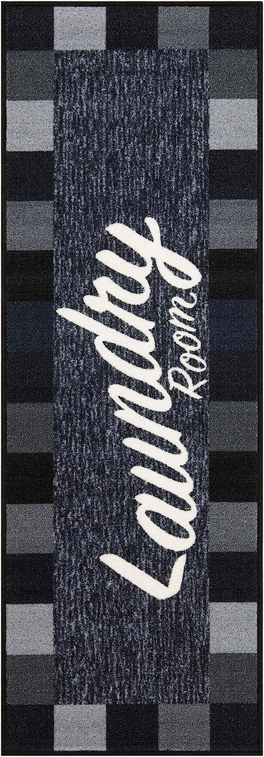 Laundry Collection Checkered Border Non-Slip Rubber Back Runner Rug, 20" x 59", Black