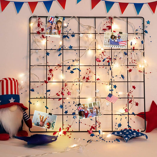 4th of July Decorations 10FT 30 LED Patriotic Decor Red White Blue Star Garland with Lights, Battery Operated 4th of July Garland for Mantle Home, Fourth of July Decor Memorial Day Decorations [Timer]