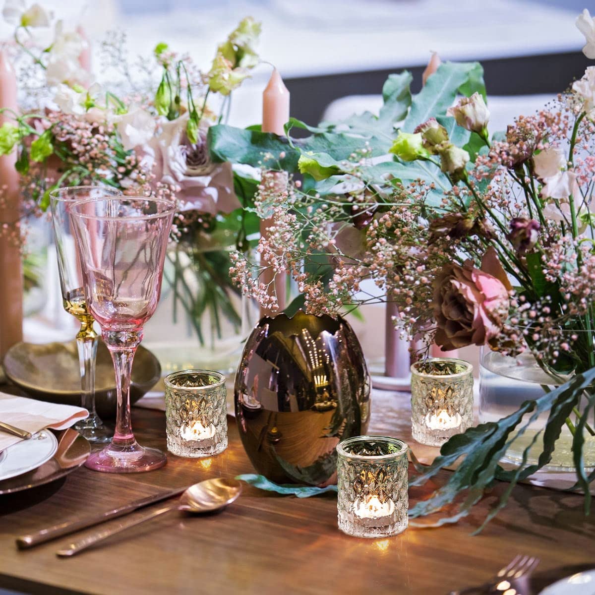 - 💎VOTIVE CANDLE HOLDERS - Wedding decorations: NITIME glass votive holder is the exquisite table centerpiece for weddings, proposals and anniversaries to enhance decor. Clear glass reflect light from the candle nicely, and the warm glow creates a romantic ambiance for you and your lover.