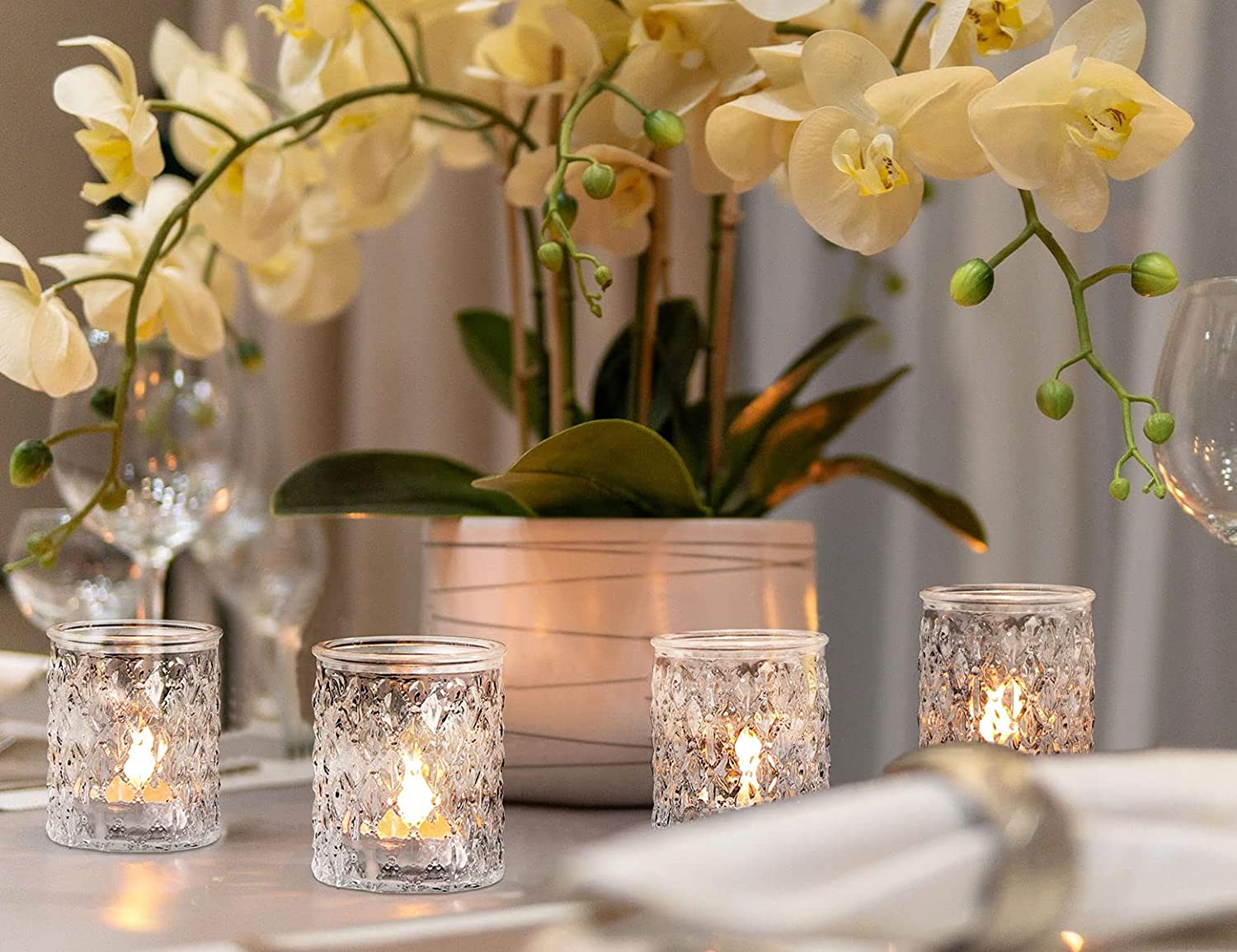 - 💎CANDLE HOLDERS IN BULK - Classy gift: NITIME tea light holder is well made, no bubbles, stylish in design and the diamond-textured glass wall makes any space sparkle. Elegant and beautiful tea light candle holders are great gift for any event.