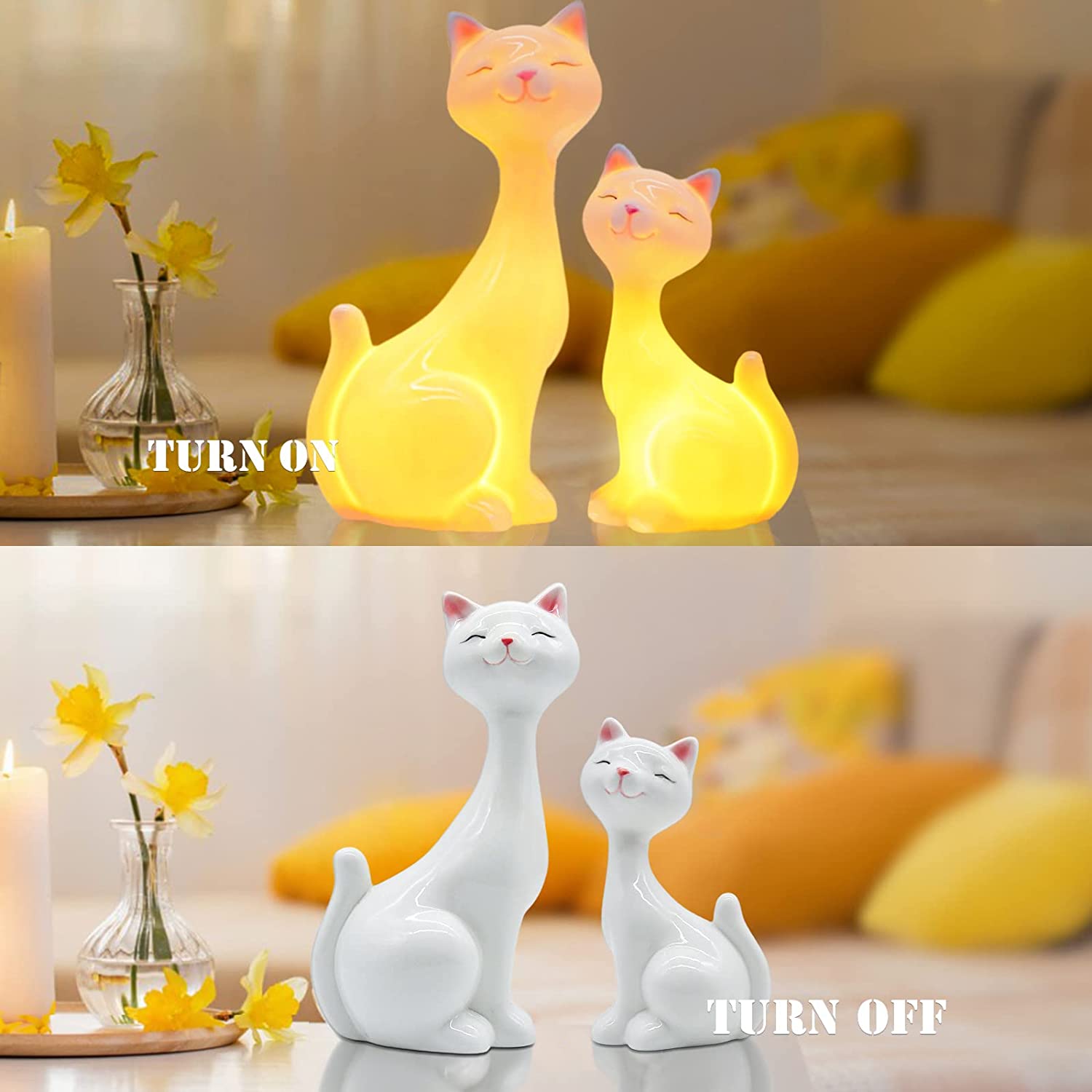 - 🐱ADORABLE: Captures a cat in beautiful hand-painted detail. They are a lovely LED ceramic statue lamp also can be displayed as an ornament.