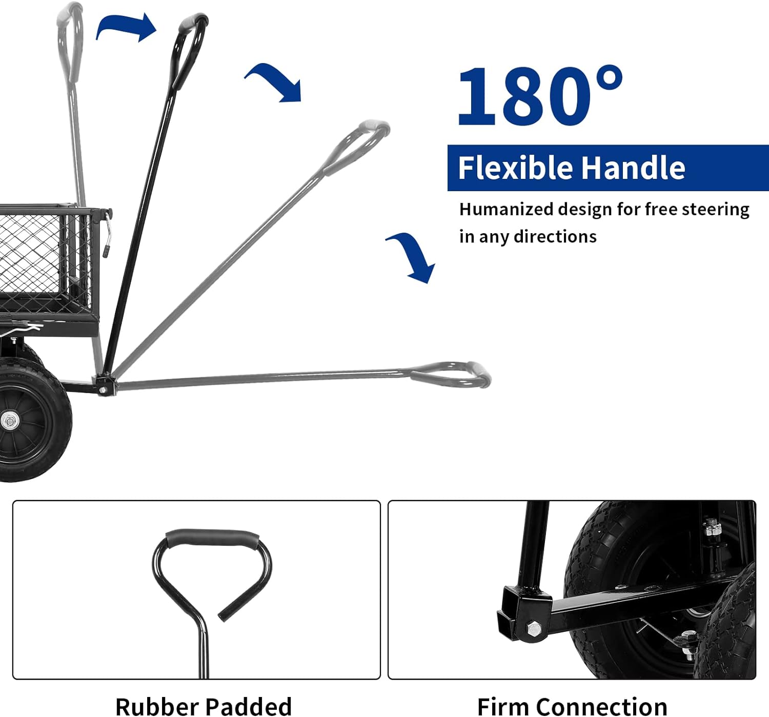 400 lbs 10" Flat Free Tires Steel Garden Cart with 180° Rotating Handle and Removable Sides, 4 Cu.Ft Capacity Utility Heavy Duty Garden Carts and Wagons