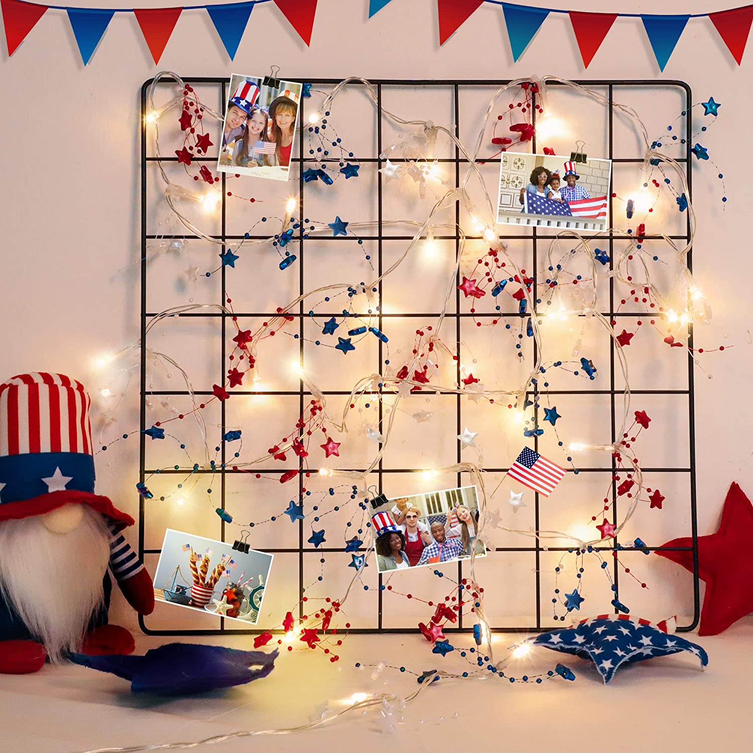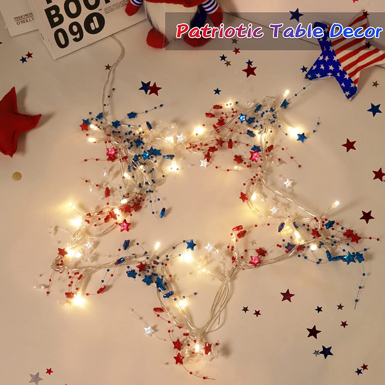 - ★【 Patriotic Red White Blue Decorations Lights】This 4th of july red white blue star garland with lights looks beautiful and festive. You can use them to create a wonderful patriotic atmosphere for your Memorial Day, Independence Day, American Flag Day, Labor Day, etc.