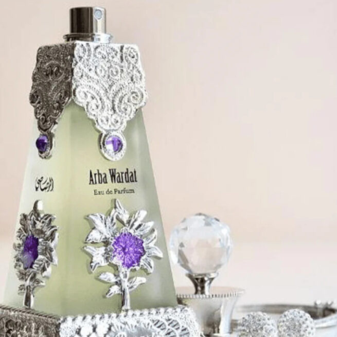 Arba Wardat by Rasasi is a Floral Woody Musk fragrance for women. Top note is Bergamot; middle notes are Jasmine and Rose; base notes are Musk, Sandalwood and Amber.