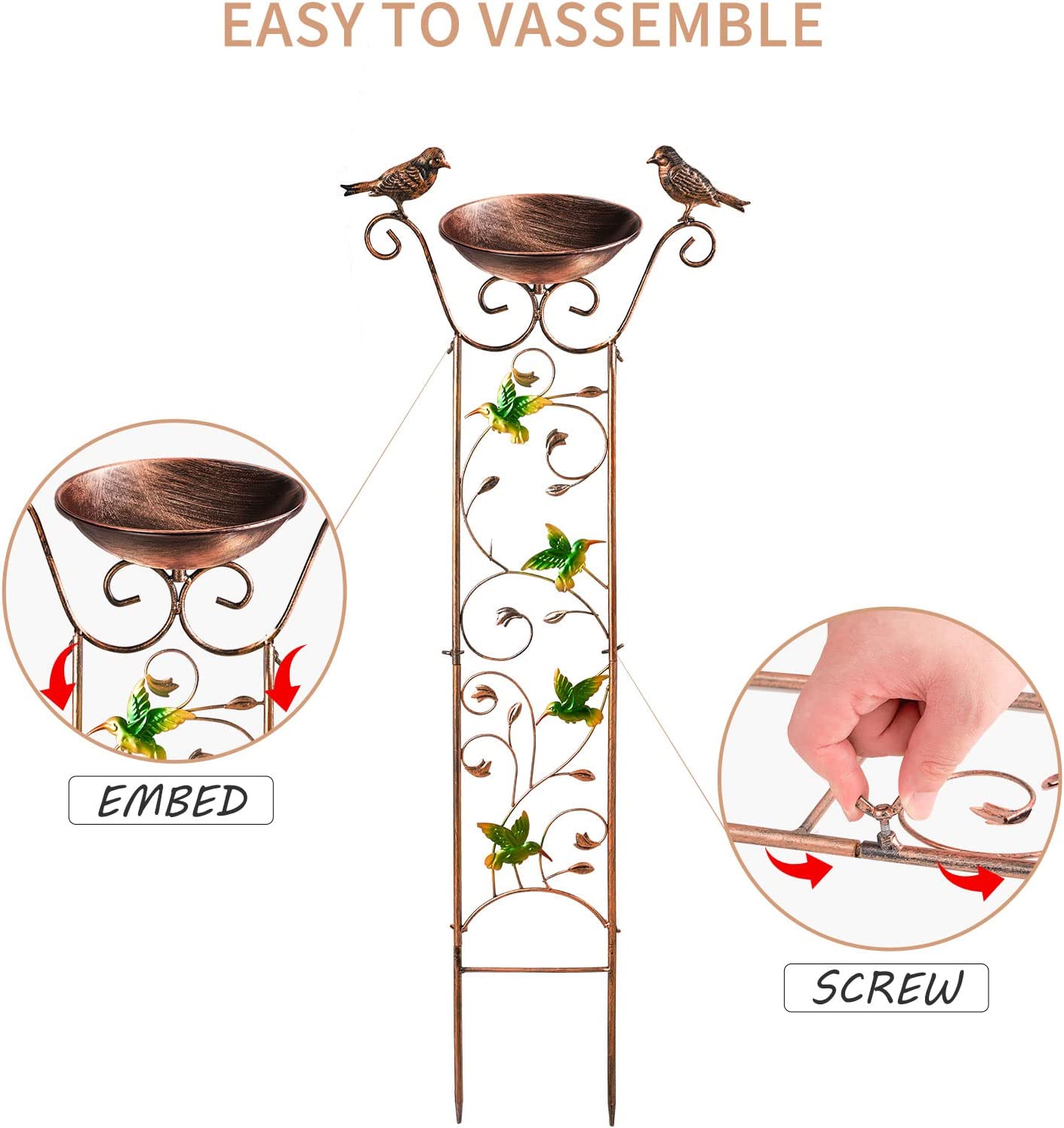 Bird Bath with Garden Trellis for Climbing Plants Outdoor 2 in 1 Bird Baths Bowl,Bird Bath for Outdoors Birdfeeder with Metal Antique Iron Easy to Install Detachable B