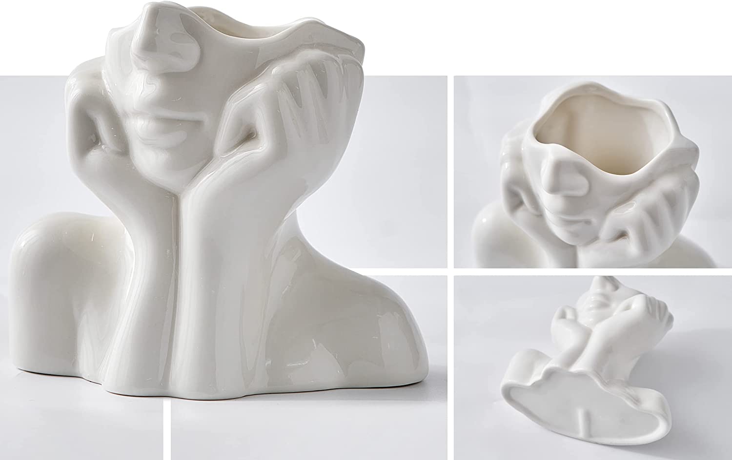 - Unique Modern Flower Vase Design - Ceramic face flower vase, changing the concept of the traditional vase, beautiful female face and modern vase art design, giving the vase a sense of beauty and style. Casual with a bunch of flowers, exudes elegance, flowers create a romantic atmosphere, adding more romance and fashion to your home.