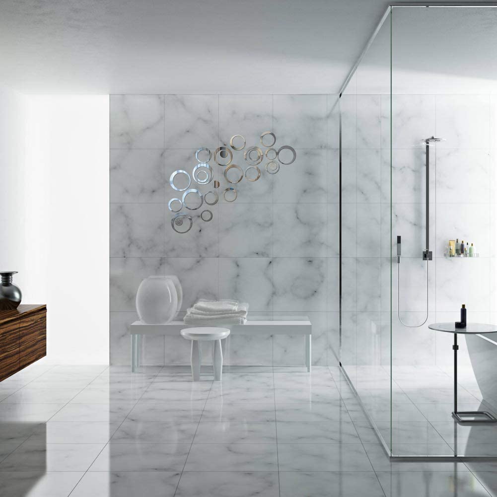 - There is a protect film on the surface. Please tear it off after pasting mirror sticker on the wall. It looks very shiny.