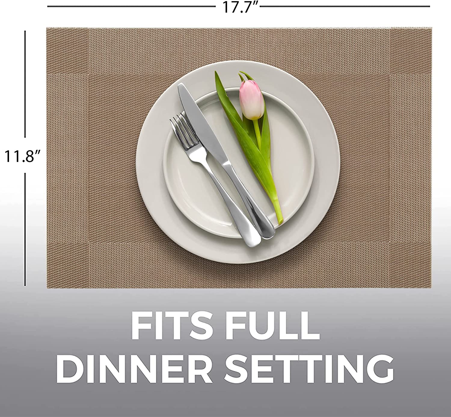 Décor Dining Table Placemats, Washable Heat-Resistant PVC Vinyl Table Mats for Dining Room and Kitchen, Anti-Slip - Set of 6 - Light Brown
