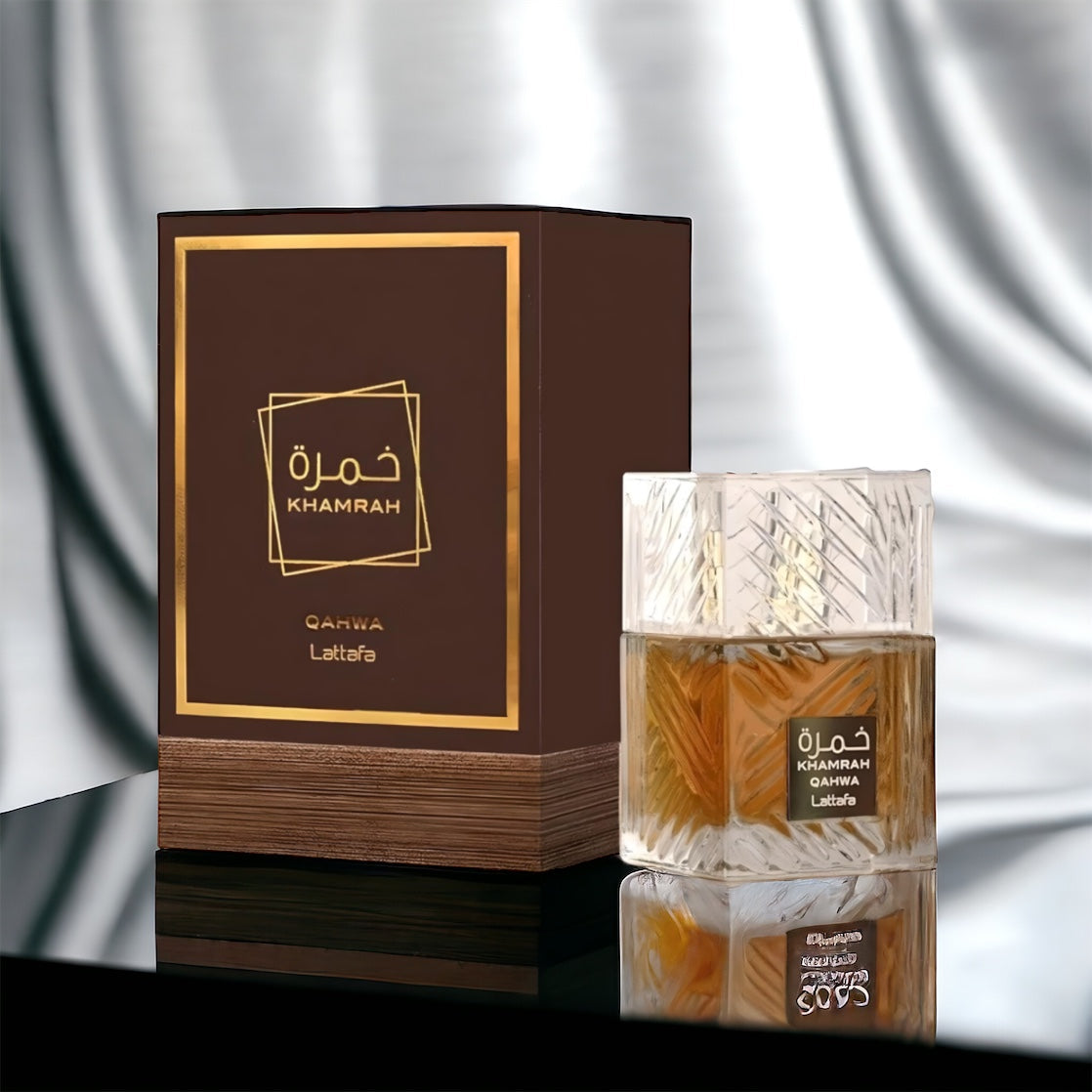 Khamrah Qahwa by Lattafa, a captivating fragrance that opens with the spicy warmth of ginger, cinnamon, and cardamom. As it evolves, the heart reveals a delectable blend of praline, candied fruits, and delicate white flowers, adding a touch of sweetness and floral elegance. Finally, it settles into a rich, comforting base of coffee Arabica, tonka beans, musk, benzoin, and creamy vanilla. Perfect for those who love a warm and inviting scent that lingers beautifully.