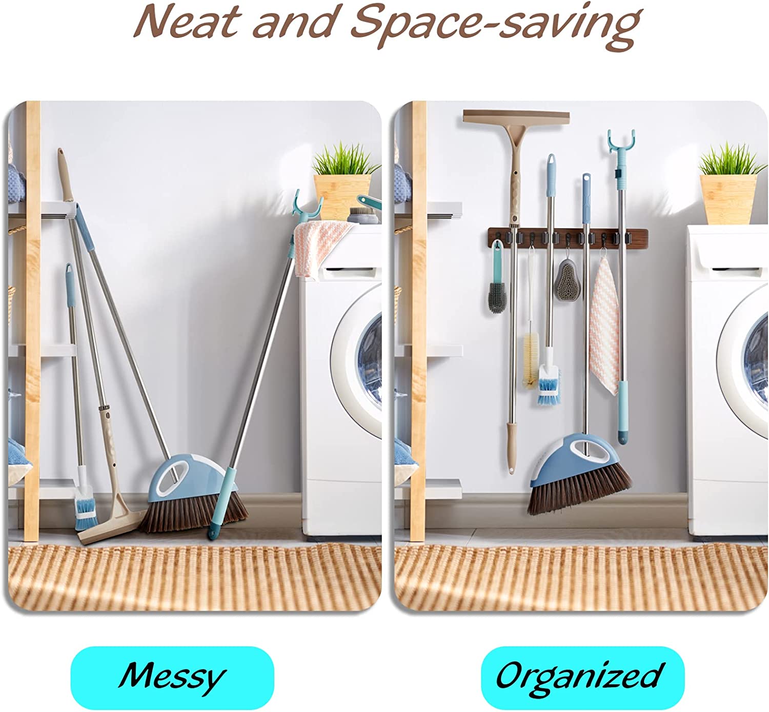 - INDOORS OR OUTDOORS - Hang your cleaning tools at any heights to prevent congestion or overcrowding on the floor. Great for that unused space behind the door or along the wall in the garage, laundry room, closet or mud room.