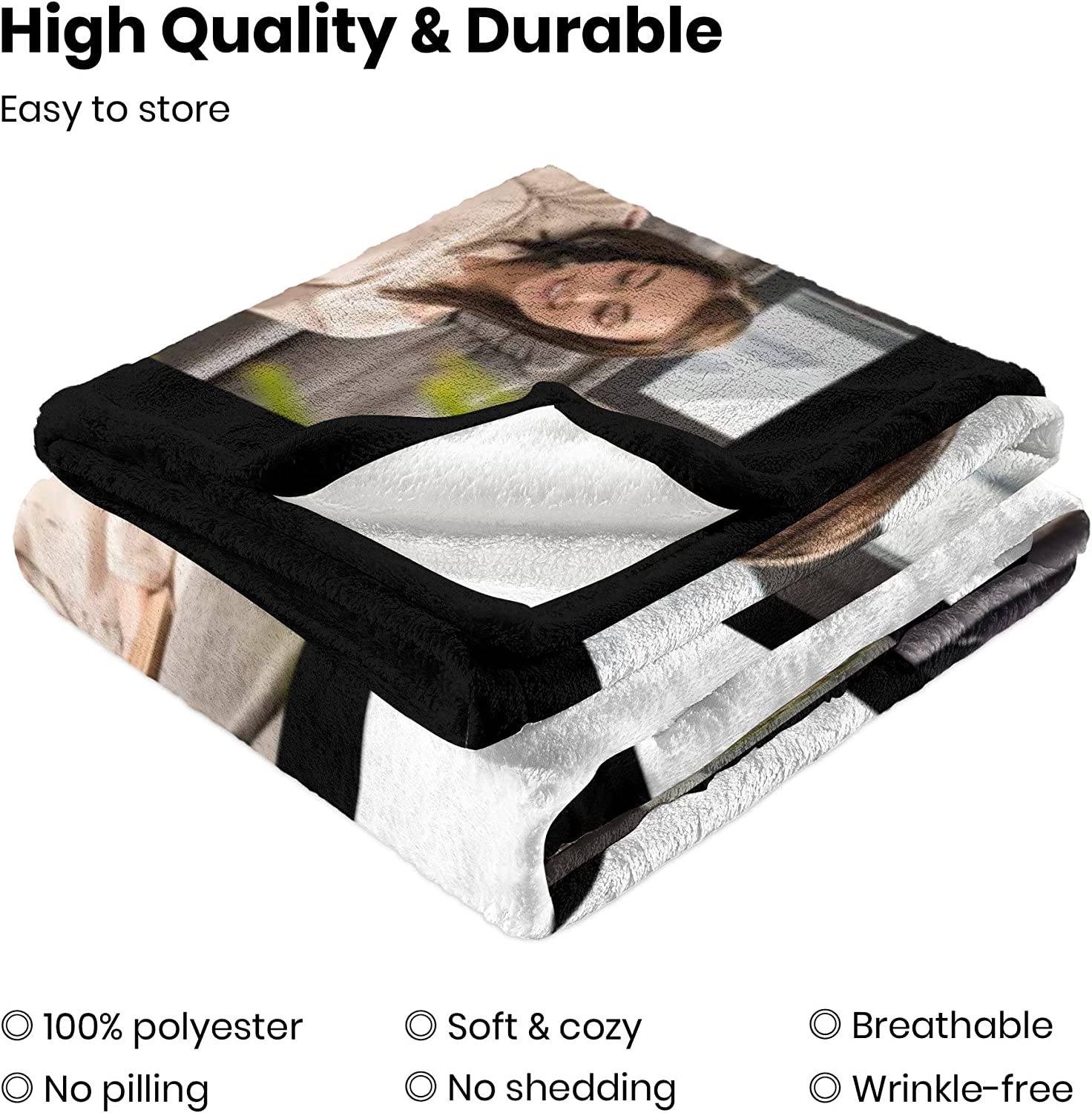 - 🎁HIGH-DEFINITION PRINTING: Our outstanding printing technology ensures that the photos on the blanket are 99% similar to those on your phone, without fading or a peculiar smell. Remember to upload high-definition photos for the best results.