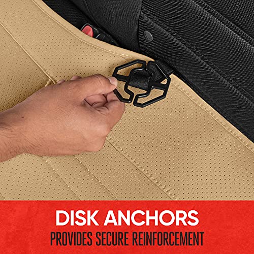 Motor Trend Beige Faux Leather 2-Pack Car Seat Cover for Front Seats, Padded Car Seat Protectors with Storage Pockets, Premium Interior Covers, Front Seat Covers for Cars Truck SUV Auto