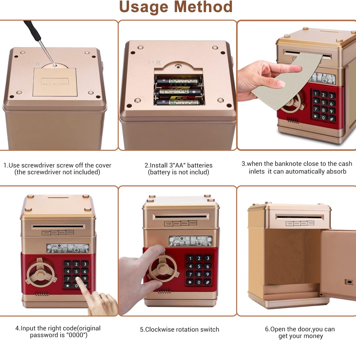Piggy Bank, Electronic ATM Password Cash Coin Can Auto Scroll Paper Money Saving Box Gift for Kids (Gold)