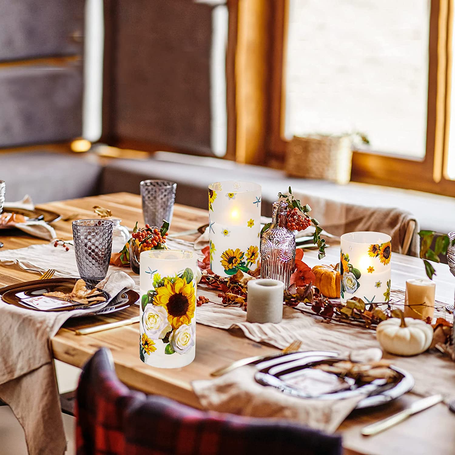 - đ»ăCharming Sunflower Gifts for WomenăThese led glass candles with sunflower flower design, made of real wax and glass, fake candles that look real. Flickering light to feel the warmth with your family. A unique gifts for women mom.