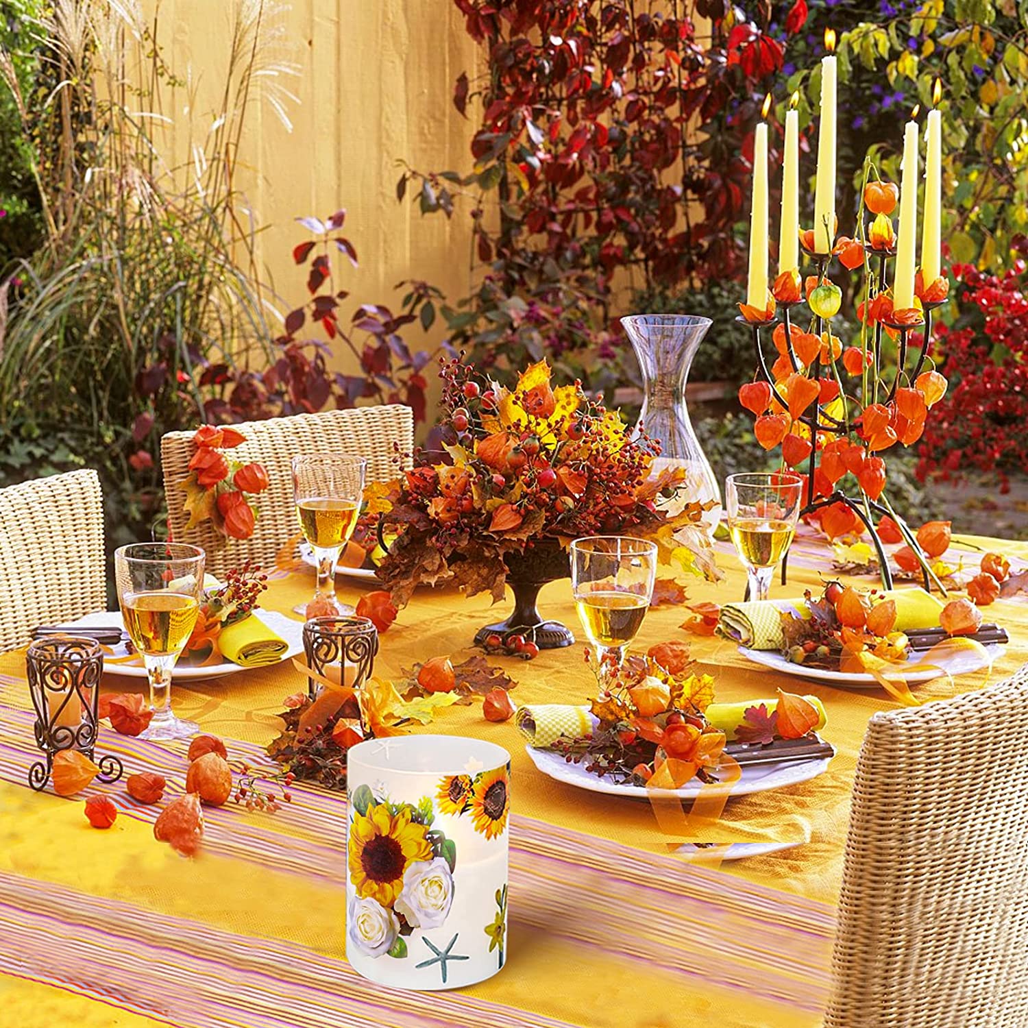 - đŒăHome Decorative CandlesăLip up these beautiful sunflower candles will give you a relaxed and warm feeling. And it can widely use in home, party, wedding, dinner table, fire place, bathroom,Valentine's Day decor, or Mother's Day gift,sunflower kitchen decor, Housewarming Gift,Get Well Soon Gifts for Women.